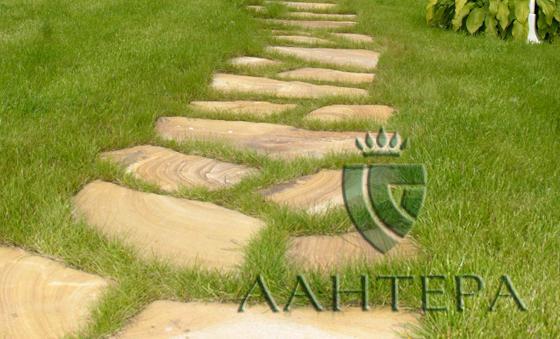 В ландшафтных работах чаще всего применяют песчаник, как самый распространенный и дешевый вариант. Брекчия – мощение из плоского природного камня рваных неправильных очертаний. Толщину 1,5-2,5 см используют при укладке на бетонное основание. При укладке на песчано-гравийное основание применяют толщину 4-6 см. Чтобы придать камню более благородный вид, его обрабатывают в галтовочных машинах, края камня становятся окатанными. Интересный момент – швы между камнем. Существует несколько вариаций – раствор, гравий мелкой фракции и трава.