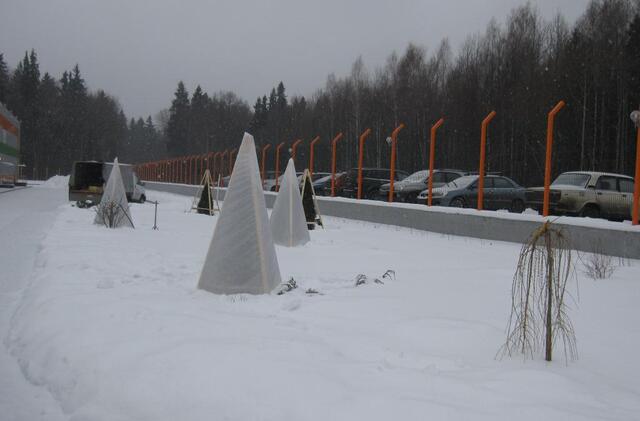 Укрытие хвойных растений на зиму В нашей стране бываю очень суровые зимы, чтобы некоторые декоративные формы хвойных растений не страдали от сильных заморозков, их следует укрывать. Для этого подойдет нетканый материал, который пропускает воздух, вертикальные растения, которые не надо укрывать, надо связывать веревкой, чтобы сильный снегопад не повредил побеги, и растение осталось такой же формы, что и зимой.